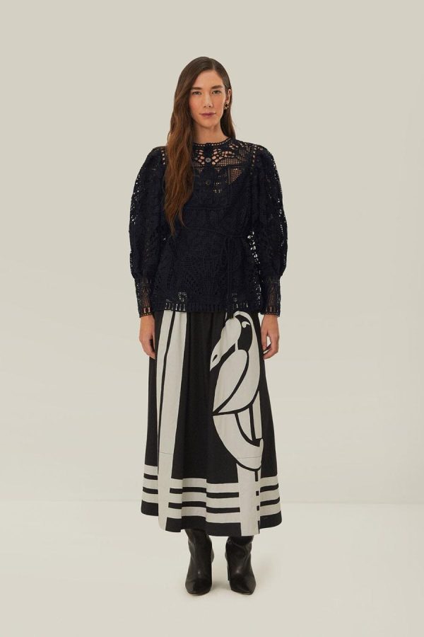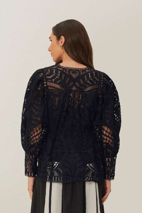 FARM Rio Blouses | Black Guipire Puff Sleeve Blouse Women