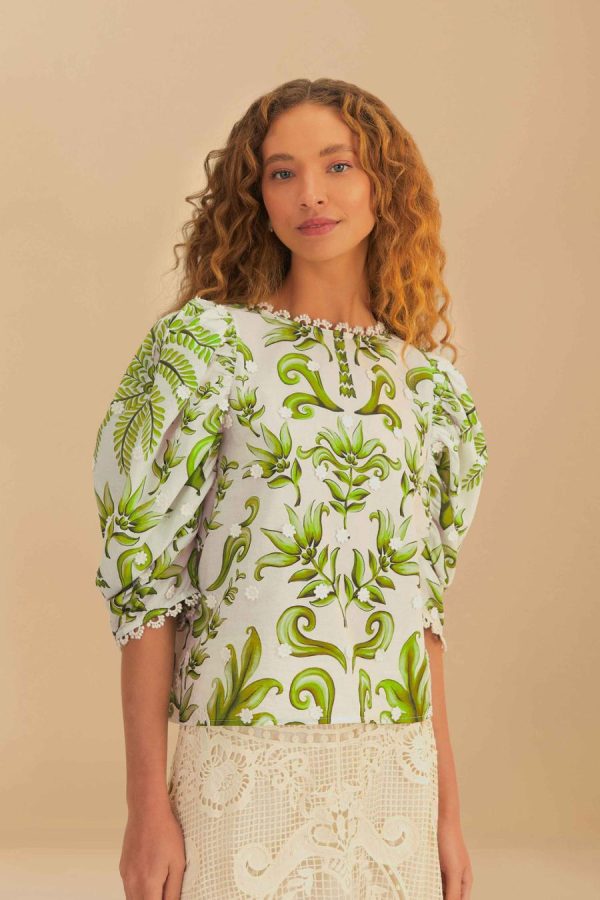 Embrace the essence of tropical elegance with the Off-White Milani Blouse, crafted with a graceful round neckline that complements its breezy silhouette. This piece is adorned with vibrant green foliage patterns that bring a touch of nature’s charm to your wardrobe. Delicate ruffles at the sleeves add a touch of femininity, while the light, airy fabric ensures comfort with a playful flair. Perfect for sunny days or balmy evenings, it’s a garment that captures the free-spirited joy of FARM Rio’s unique designs.