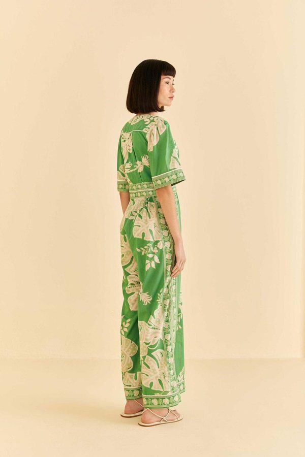 Embody the exuberant energy of the season in a Summer-ready style. The Green Lace Monsteras Jumpsuit brings the freshest silhouette with a plunging neckline to make a bold impression everywhere and one of the must-have prints of our new collection. For a chic-yet-cool look, you can bring sandals and mules on or throw sneakers for a fun vibe: either way, you’ll be effortlessly walking on the brightest side!
