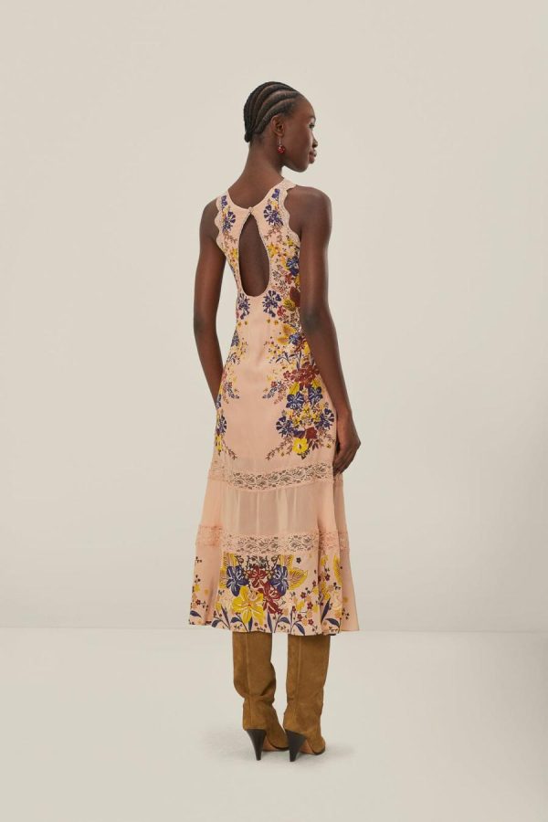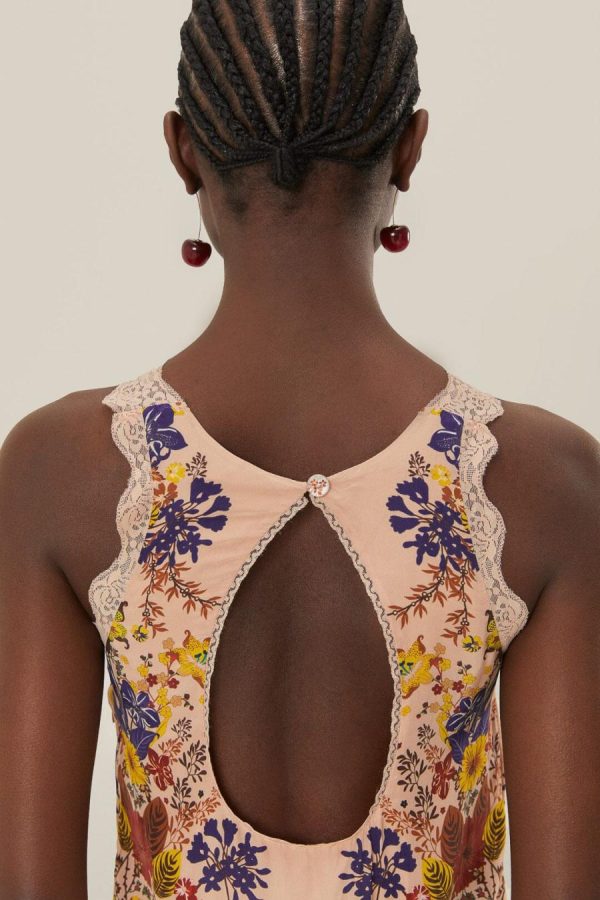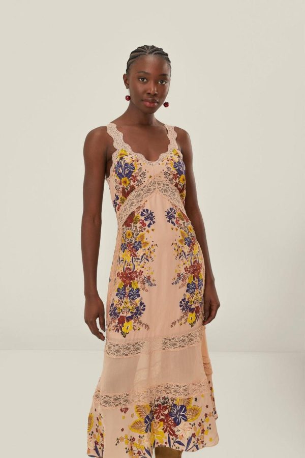 Embrace the enchantment of the Pink Beauty Bouquet Sleeveless Maxi Dress, a poetic symphony of florals on a blush canvas. This piece charms with a delicate sweetheart neckline edged in soft lace, a harmony of pastel hues and lush botanical motifs cascading along the fluid silhouette. The airy maxi length whispers of summer gardens, while the alluring back cut-out adds an unexpected twist of romance to your every turn. A celebration of femininity, this dress invites you on a journey through FARM Rio’s whimsical world.