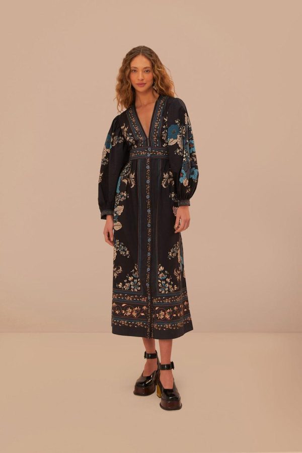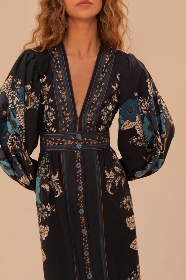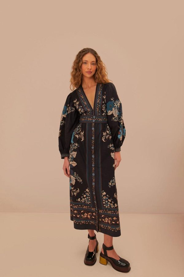 FARM Rio Midi Dresses | Blossom Tapestry Black Midi Dress Women