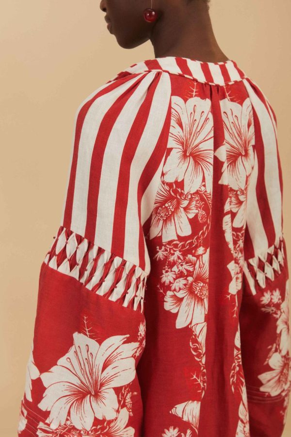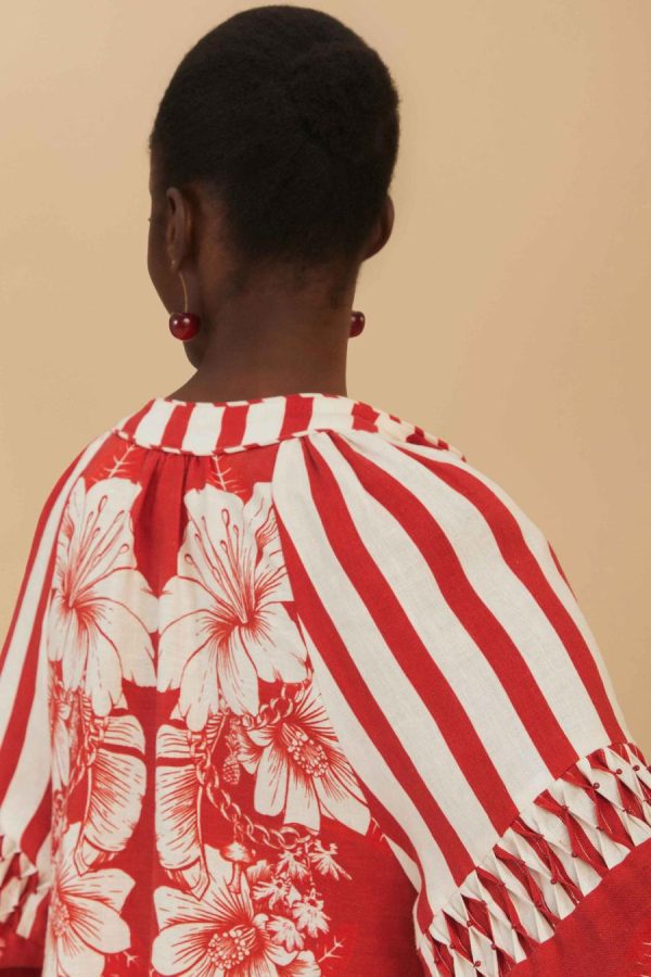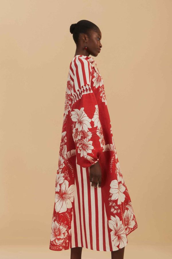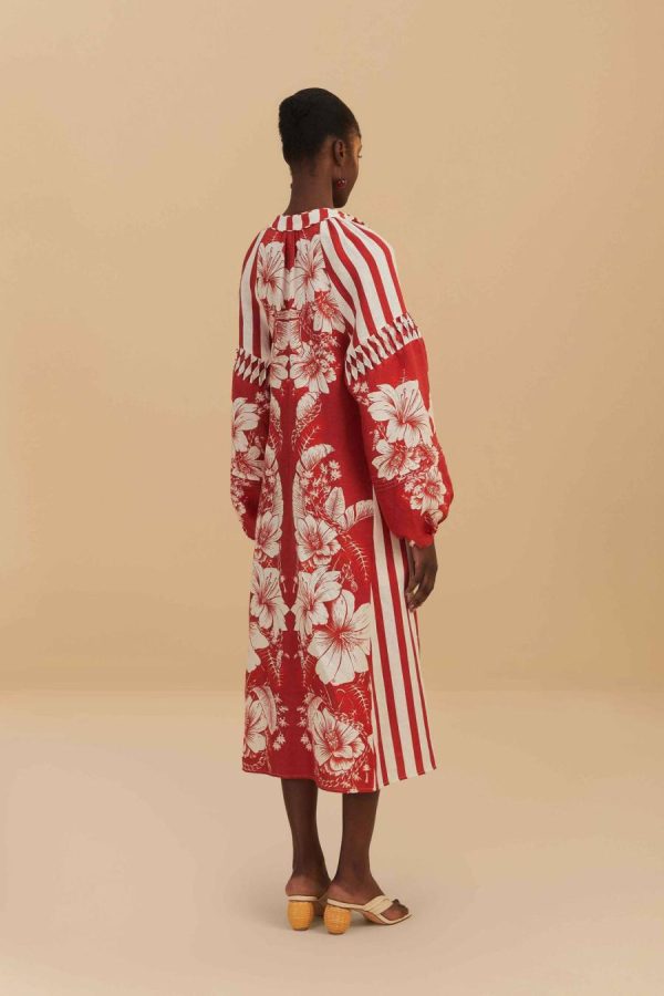 FARM Rio Midi Dresses | Red Floral Chains Stripes Midi Dress Women