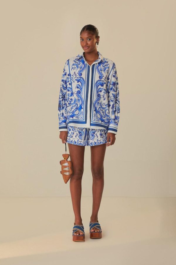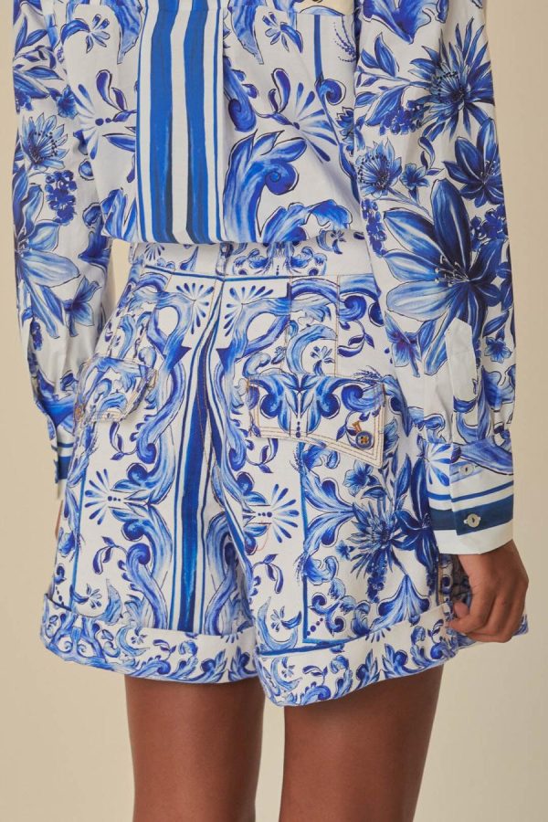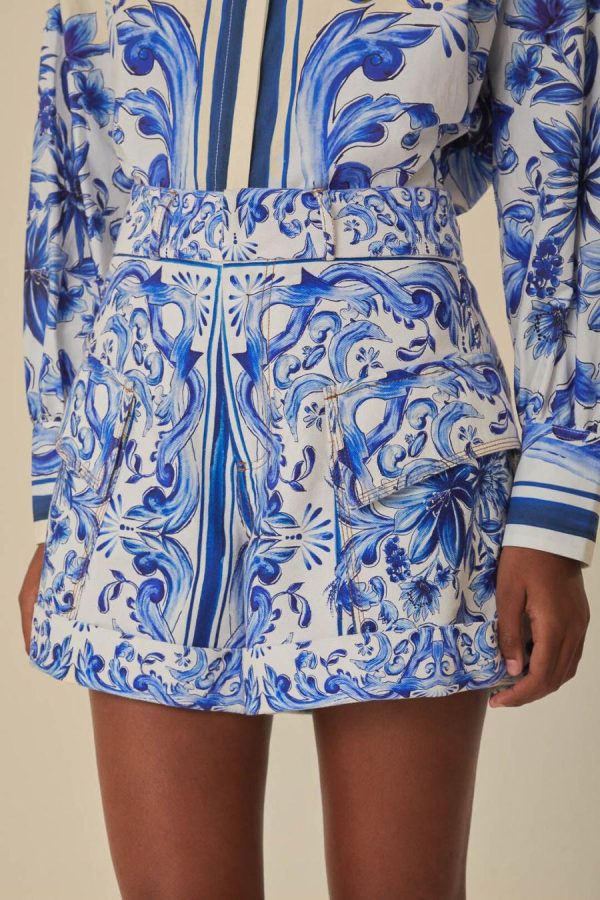 Step into a world of vibrant artistry with the Garden Tiles Plaid Shorts from FARM Rio. These eye-catching shorts feature a bold blue and white porcelain-inspired print, adorned with delicate embroidery that adds a touch of refinement. Crafted with responsibly sourced materials, the design boasts a flattering fit that gracefully accentuates your silhouette. Embrace the charm of these unique shorts, perfect for creating memorable looks with a playful and artistic flair.
